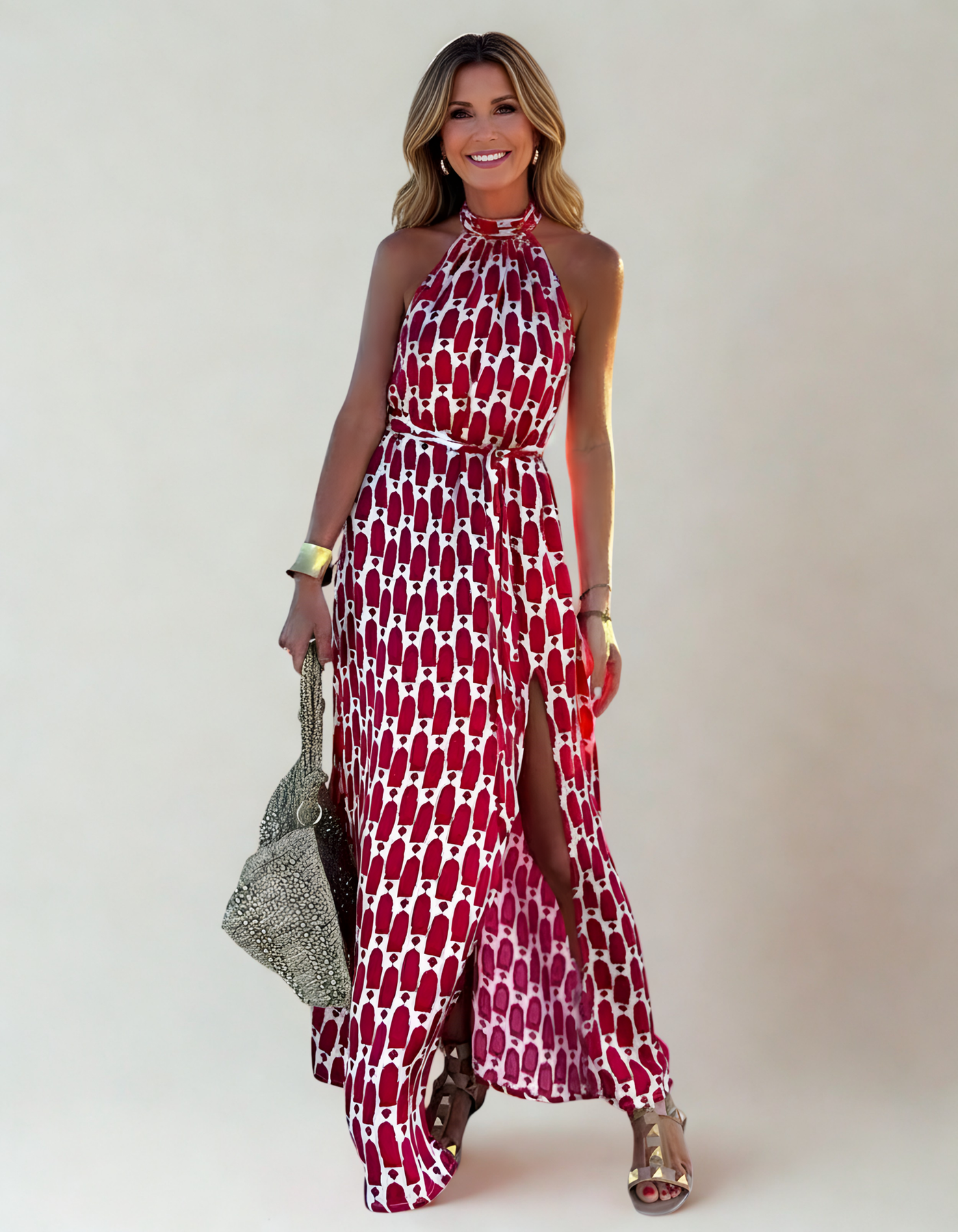 The Mika Fashionable Halter Neck Dress is designed to catch the eye with an elegant round neckline and a flattering silhouette. Perfect for any occasion, this dress combines sophistication with a touch of daring, making it a must-have for your wardrobe. Whether it's for a night out or an elegant daytime look, it's all about confidence and grace.