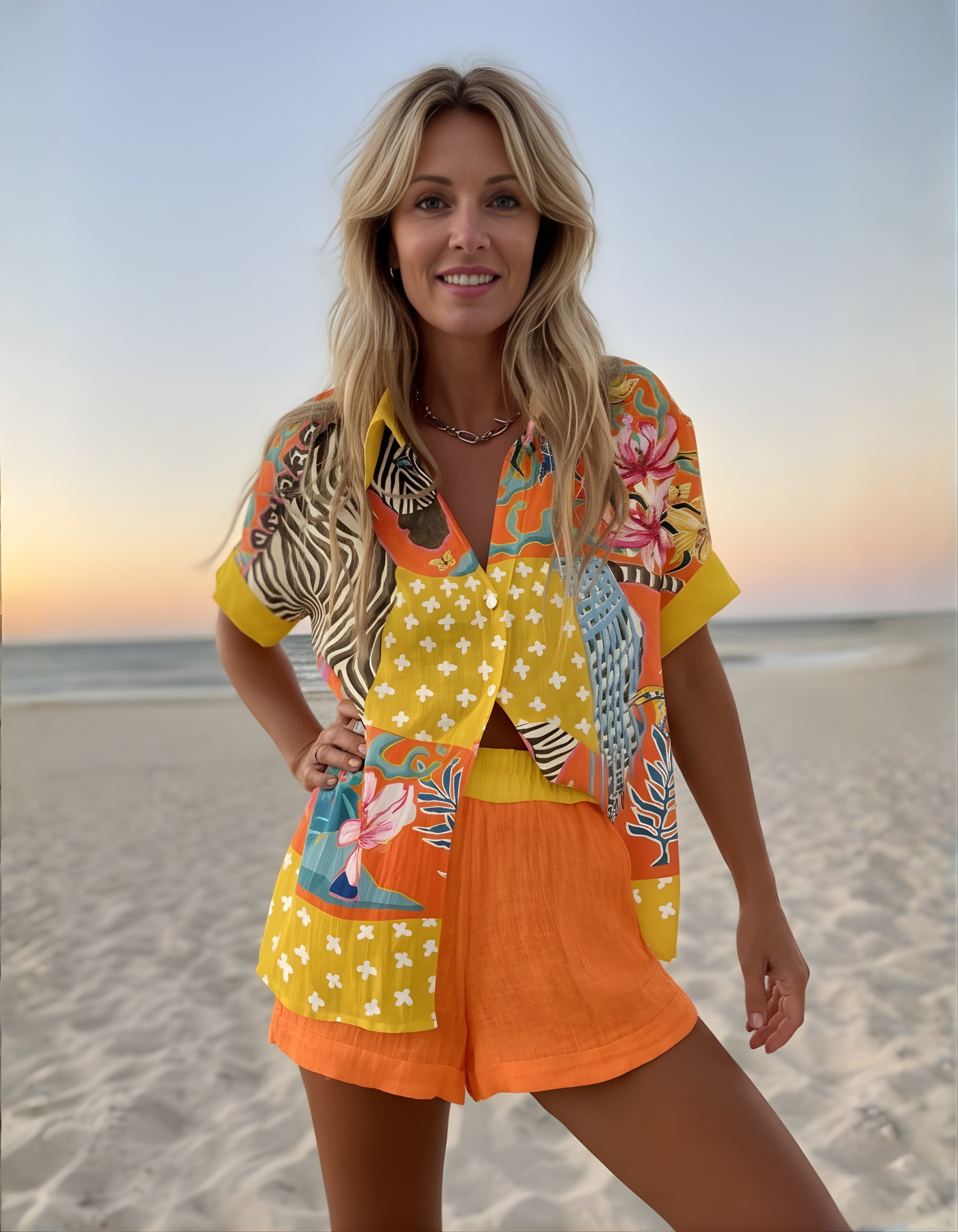 Add a touch of vintage charm to your summer wardrobe with the Norellia short summer jumpsuit in dot design. This stylish and relaxed outfit offers a loose fit and breathable material, perfect for sunny walks, picnics, or weekend brunches. Pair it with espadrilles or a straw hat for a charming seasonal look.