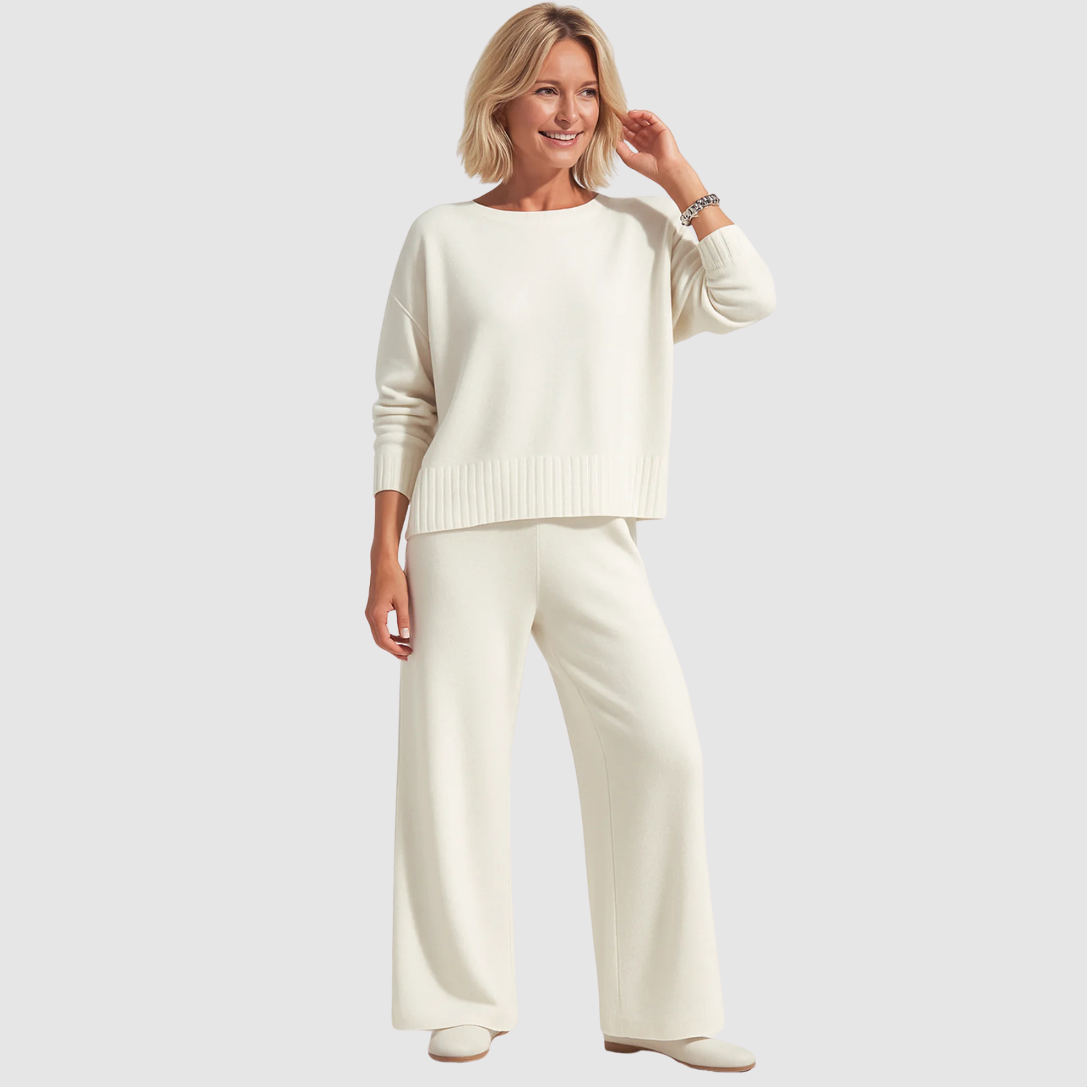 Feel stylish and comfortable in our elegant set. Thanks to the wonderfully airy material and optimal freedom of movement, you will not only look good, but also feel comfortable. Simply combine it with a nice jacket or mix and match the different elements. Perfect and indispensable for all seasons.